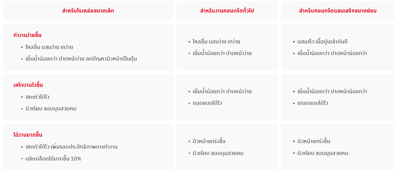 - ทราย หิน และน้ำที่ใช้ผสมต้องสะอาด
