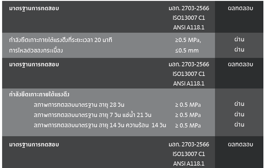 • มีสารยึดเกาะพิเศษทำให้กระเบื้องติดแน่น ไม่หลุดร่อน